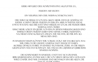 Liebes Mitglied der Hospiz-Initiative Salzgitter e.V., – Frieden auf Erden –